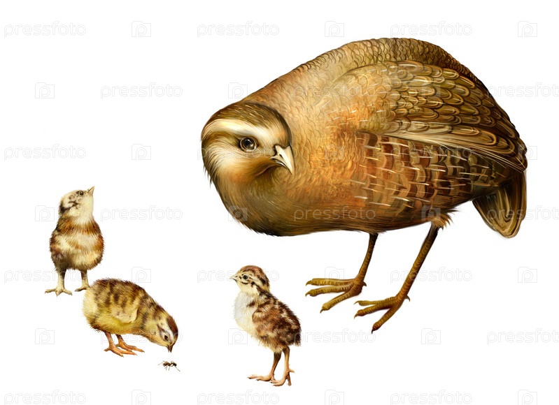 Серая куропатка, на белом фоне