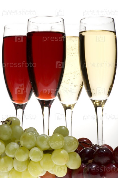 Объект на сером - бокалах шампанского с виноградом
