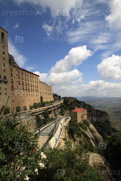Железнодорожные пути Кремальеры при монастыре Монсеррат, Каталония, Испания