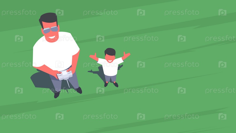 Отец и сын, стоя на лужайке