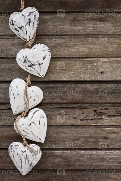Белые деревянные сердца на старые деревянные коричневый фон