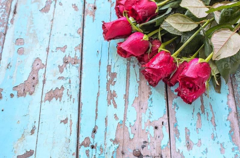 Красные розы на старый деревянный фон