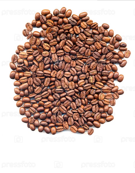 Кофейные бобы упакованы в один слой, изолированный на белом фоне