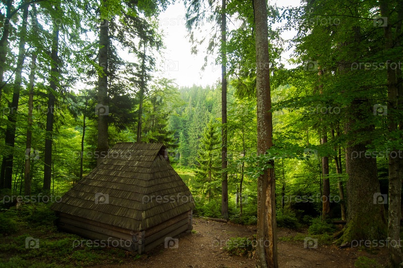 Хижина в сосновом лесу