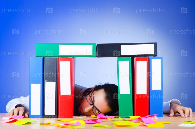 Бизнесмен с большим количеством папок