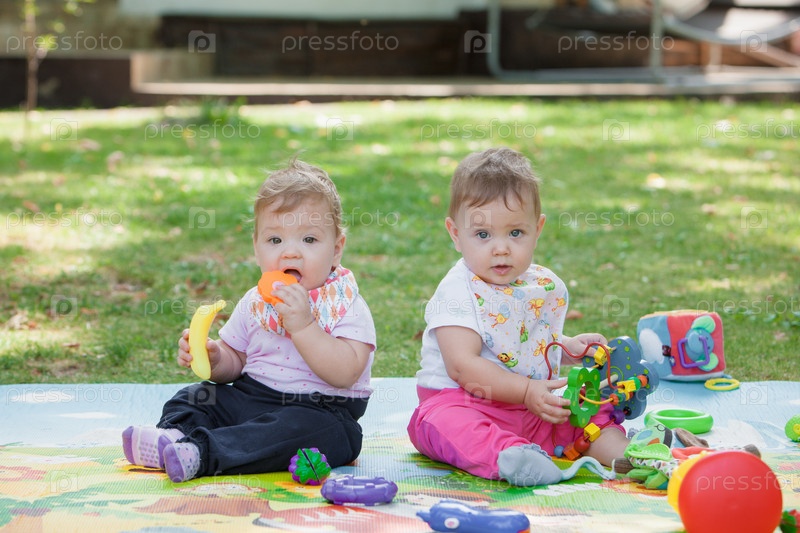 Маленькие дети играют с игрушками