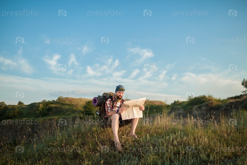 Мужчина сидит на вершине холма