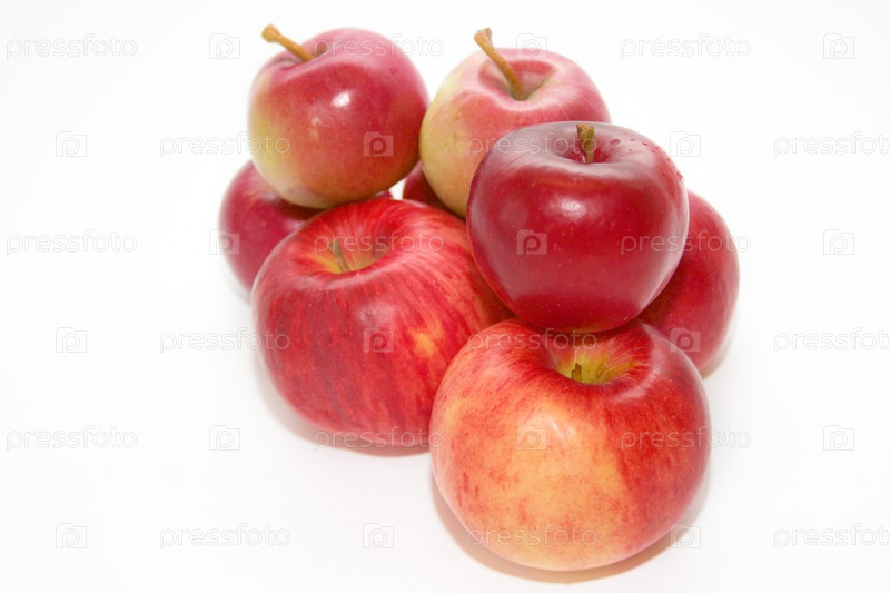 Несколько красных яблок крупным планом на белом фоне