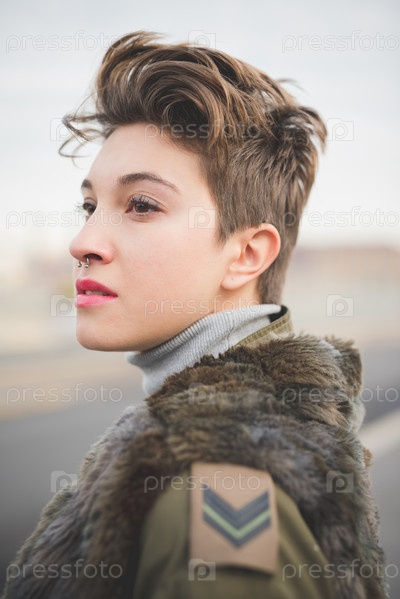 Молодая красивая женщина с короткими волосами хипстер