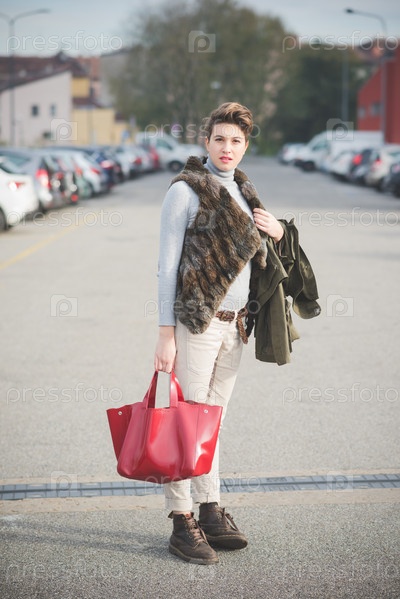 Молодая красивая женщина с короткими волосами хипстер