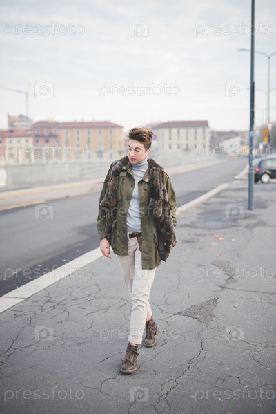 Молодая красивая женщина с короткими волосами хипстер