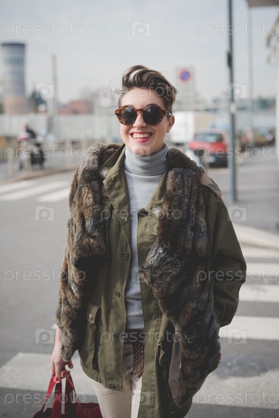 Молодая красивая женщина с короткими волосами хипстер