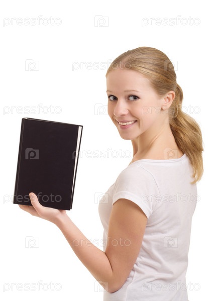 Привлекательная девушка с книгой на белом фоне