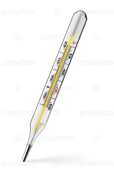 Медицинский ртутный термометр на белом фоне