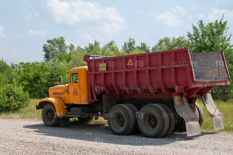 Самосвал с радиоактивным знаком на кузове