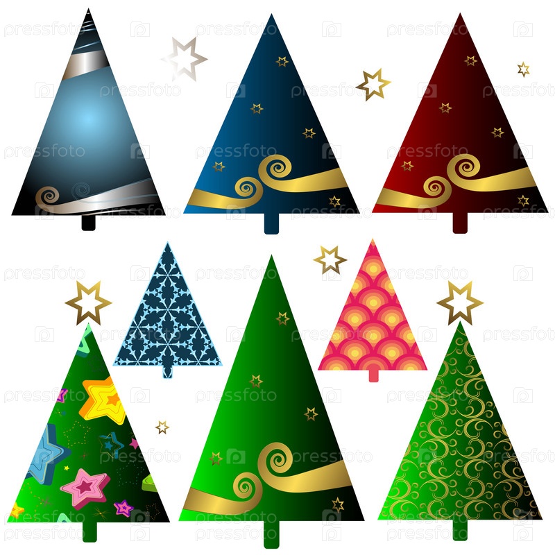 Набор рождественских елок на белом фоне