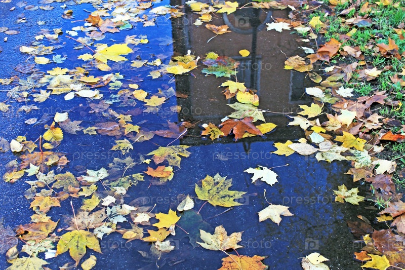 Осенние листья в городской луже