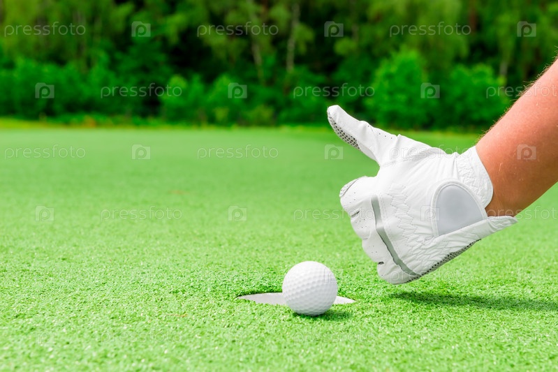 Мужская рука возле лунки для гольфа