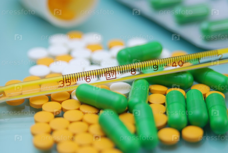 Таблетки и термометр