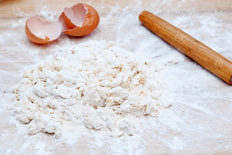 Яичная скорлупа, мука с яйцом и скалка