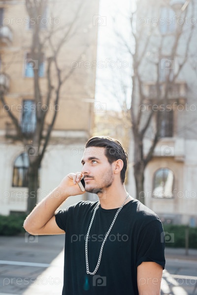 Молодой итальянский парень с помощью смартфона