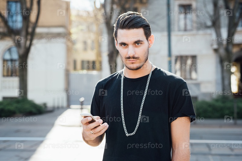Молодой итальянский парень с помощью смартфона