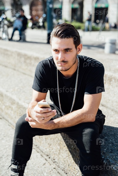 Молодой итальянский парень с помощью смартфона