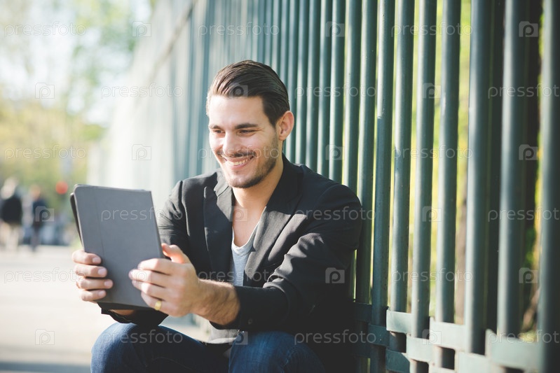 Молодой итальянский парень, использует планшет