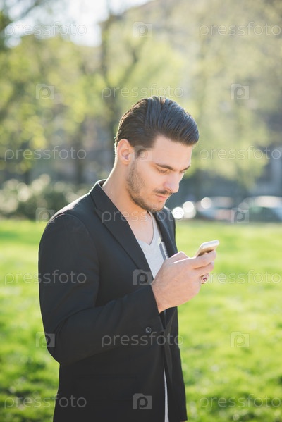 Молодой итальянский парень с помощью смартфона