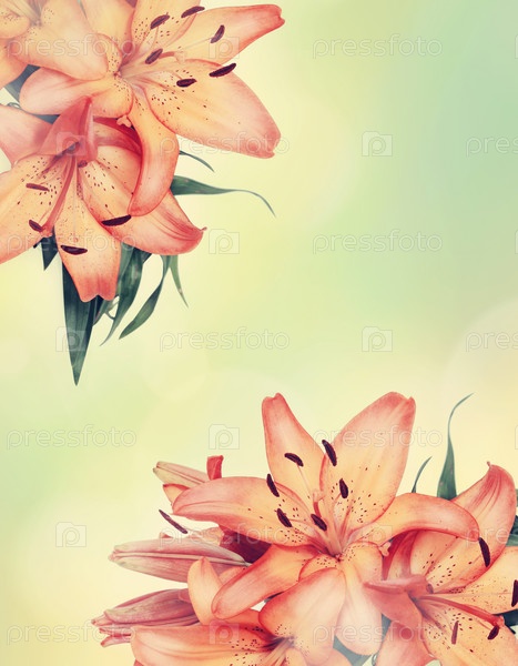Поздравительная открытка лилий на зеленом фоне