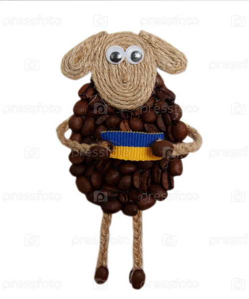 Ягненок зерен кофе с флагом Украины, ручной работы