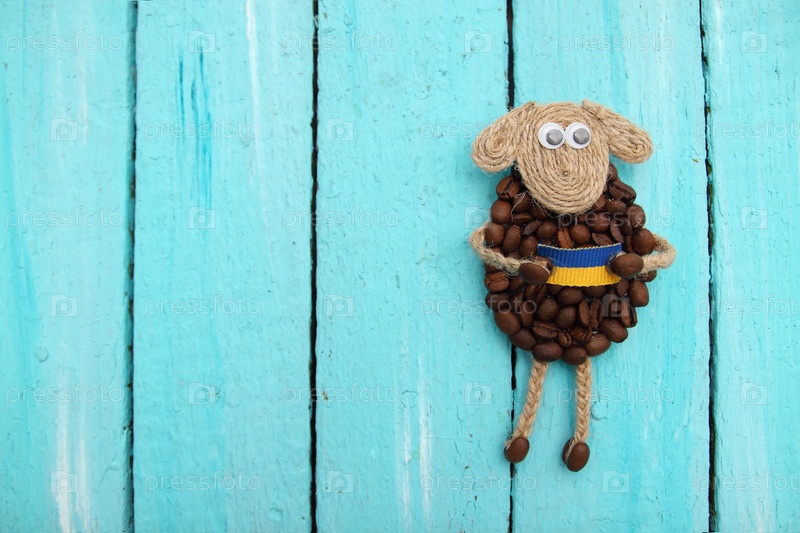 Ягненок зерна кофе с флагом Украины, ручной работы