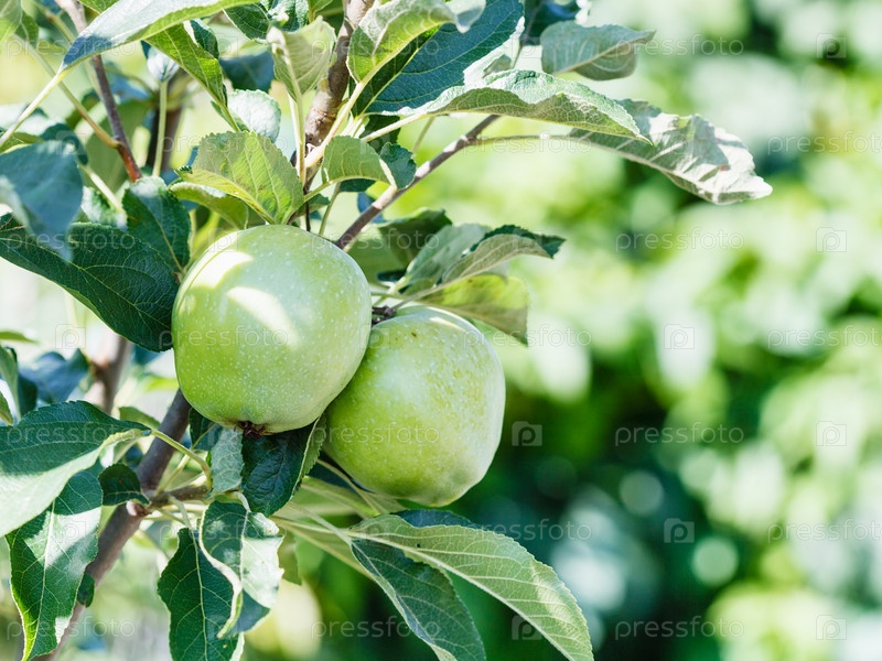 Зеленые яблоки на ветви дерева
