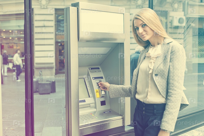 Женщина возле Банкомата банка