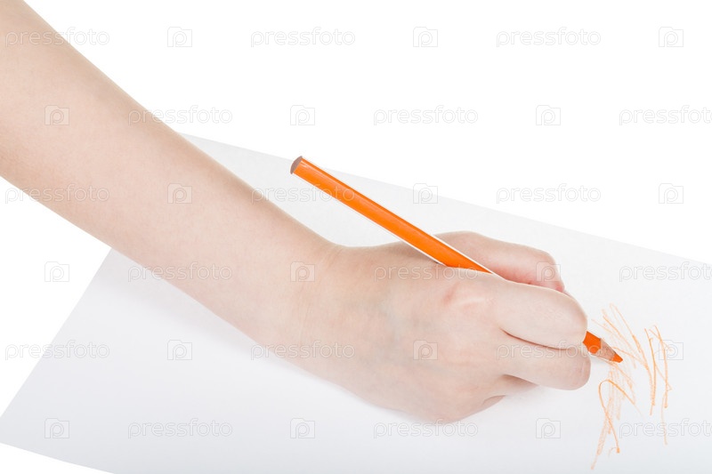 Ручной краски оранжевый карандашом на листе бумаги