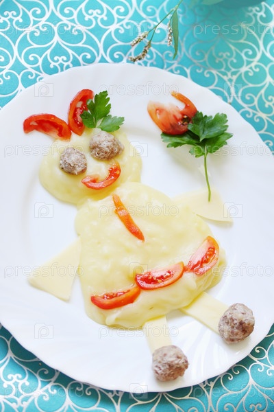 Блюда для детей. девушка из картофеля с фрикадельками