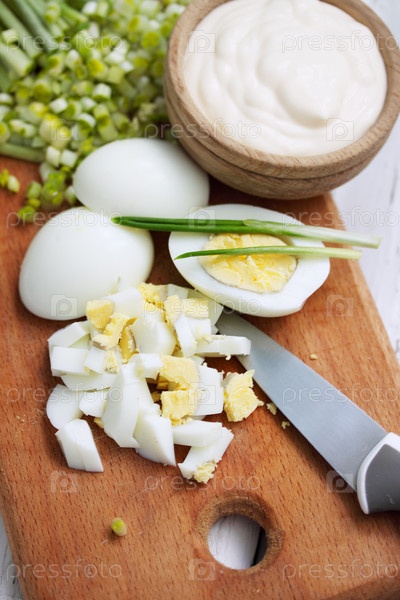 Пучки черемши и вареные яйца