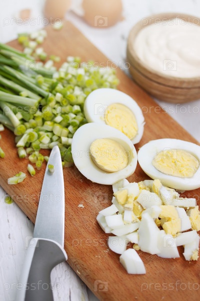 Пучки черемши и вареные яйца