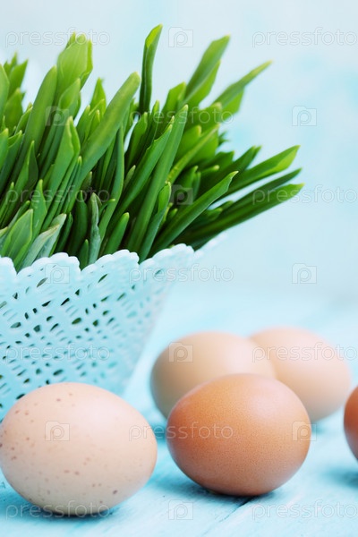 Пучки черемши и вареные яйца