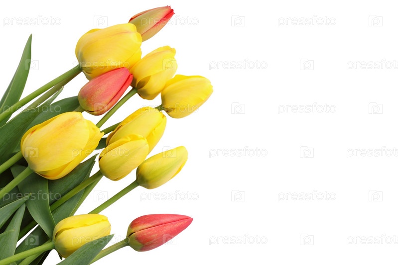 Красивый букет из тюльпанов на белом фоне