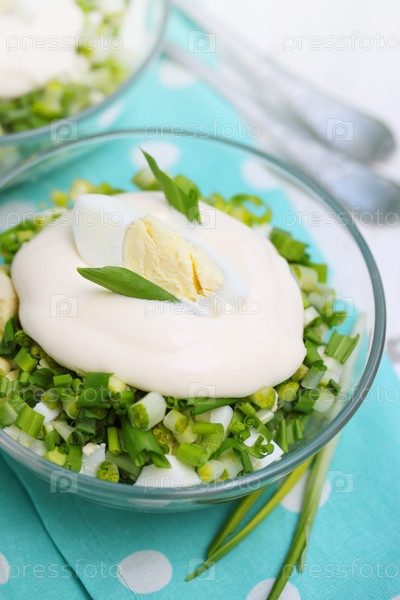 Нарезанный салат с сухариками, Черемша и майонезом