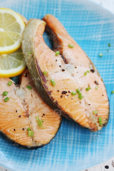 Стейки жаркое красная рыба с лимоном и специями