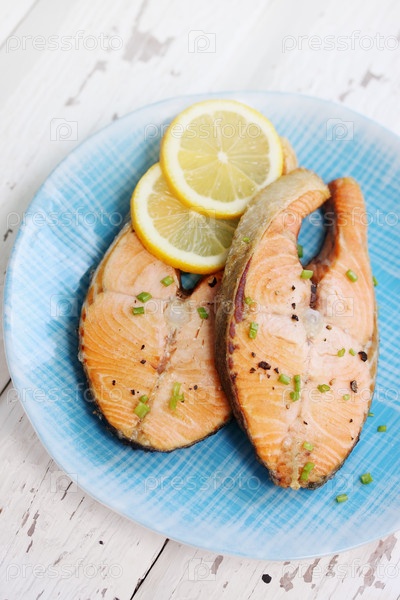 Стейки жаркое красная рыба с лимоном и специями