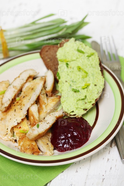 Белое мясо и чесночным маслом и клюквенным соусом