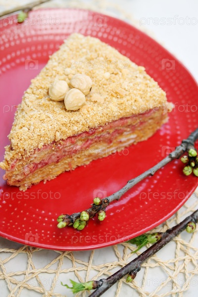 Медовый торт с клубничным джемом и орехами