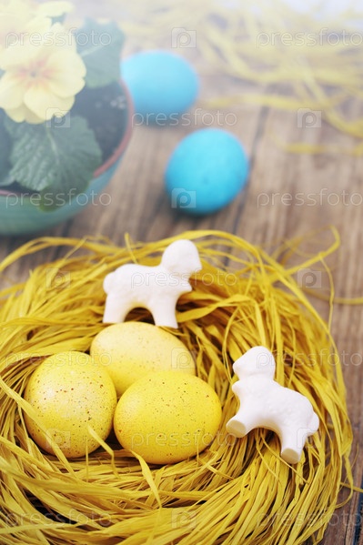 Весна Пасха Натюрморт с цветной яйца
