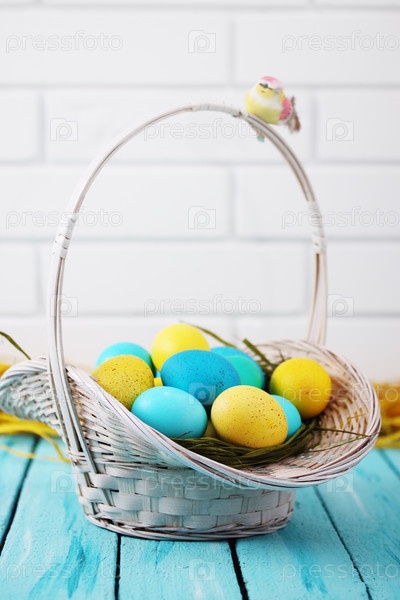 Пасхальный натюрморт корзина и крашеные яйца
