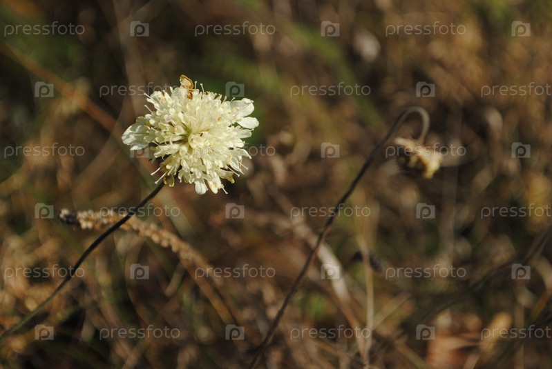 Белый цветок на фоне сухой травы