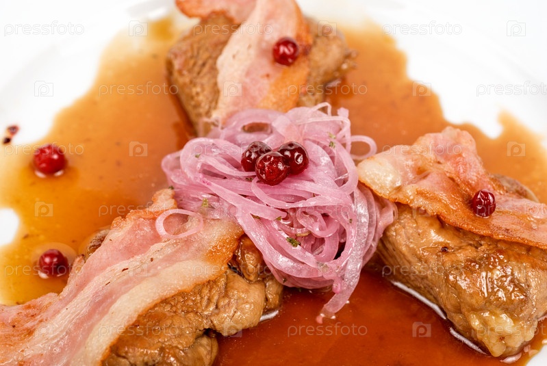 Жаркое из свинины с беконом, луком и клюквой