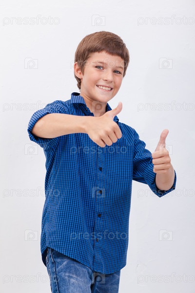 Довольный мальчик показывает большие пальцы вверх